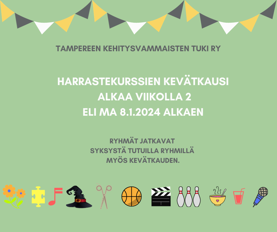 Harrastekurssien kevätkausi alkaa viikolla 2, samoilla ryhmillä kuin syksyllä on kokoonnuttu.