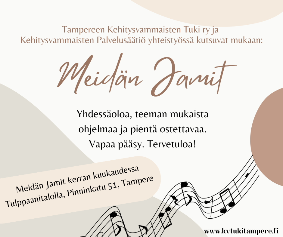 Meidän Jamit on Tampereen Kehitysvammaisten Tuki ry:n ja Tukena-säätiön (ent. Kehitysvammaisten Palvelusäätiö) yhteistyössä toteuttama kohtaamispaikka, joka kokoontuu kerran kuukaudessa.