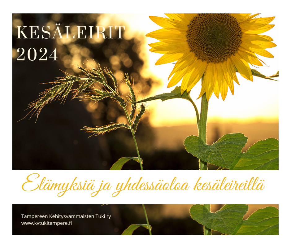 Tampereen Kehitysvammaisten Tuki ry järjestää kesällä 2024 yhdeksän kesäleiriä Tampereen kaupungin Kulttuuri- ja vapaa-aikalautakunnan myöntämällä avustuksella.